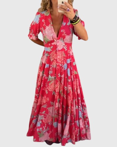 שמלה פרחונית שיקית עם צווארון וי מבית Dish