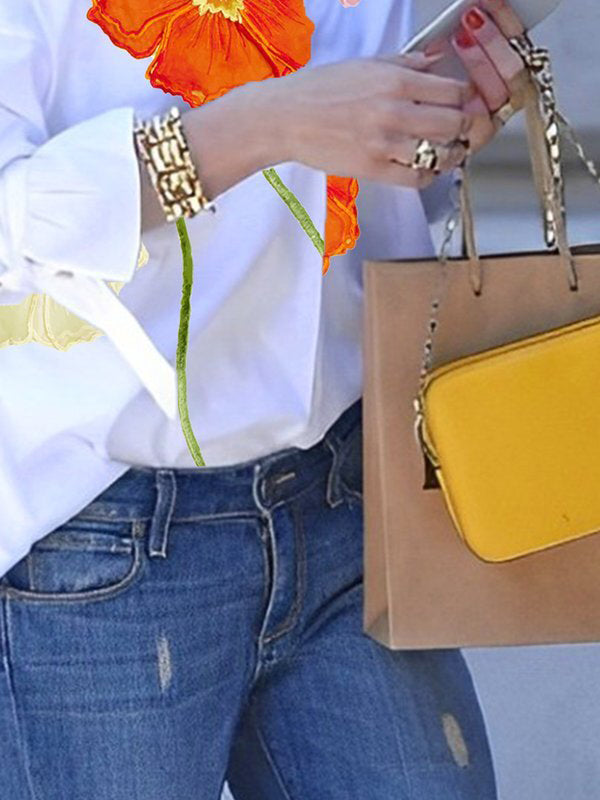 Flared Sleeve Floral Print Long Sleeve Blouse with Tied Stand Collar