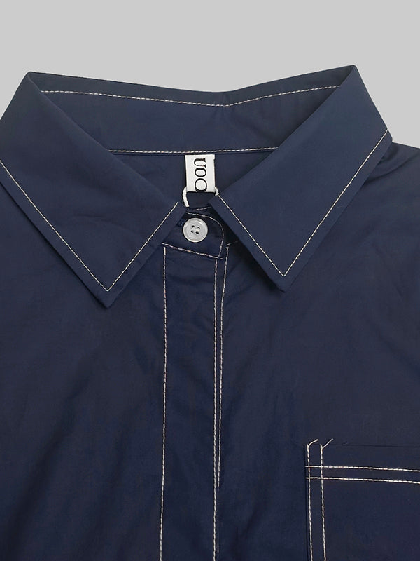 Solid Color Midi Dress with Long Sleeves, Loose Fit, Buttoned Pockets, and Lapel Collar