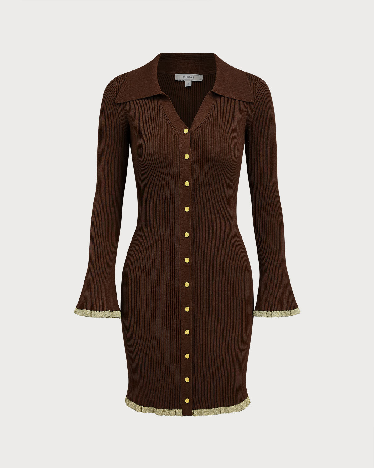 שמלת סוודר צמודה עם מכופתרות בצבע חום שוקולד