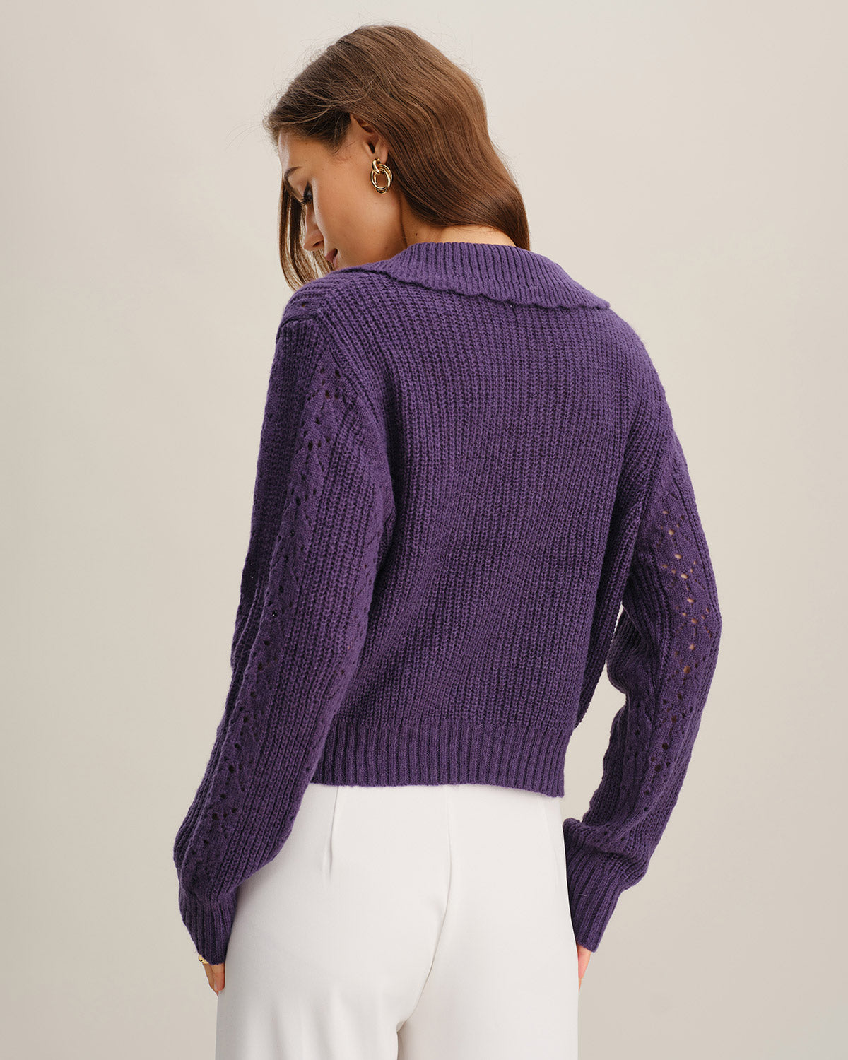 קרדיגן סרוג סגול עם עיצוב חזה יחיד
