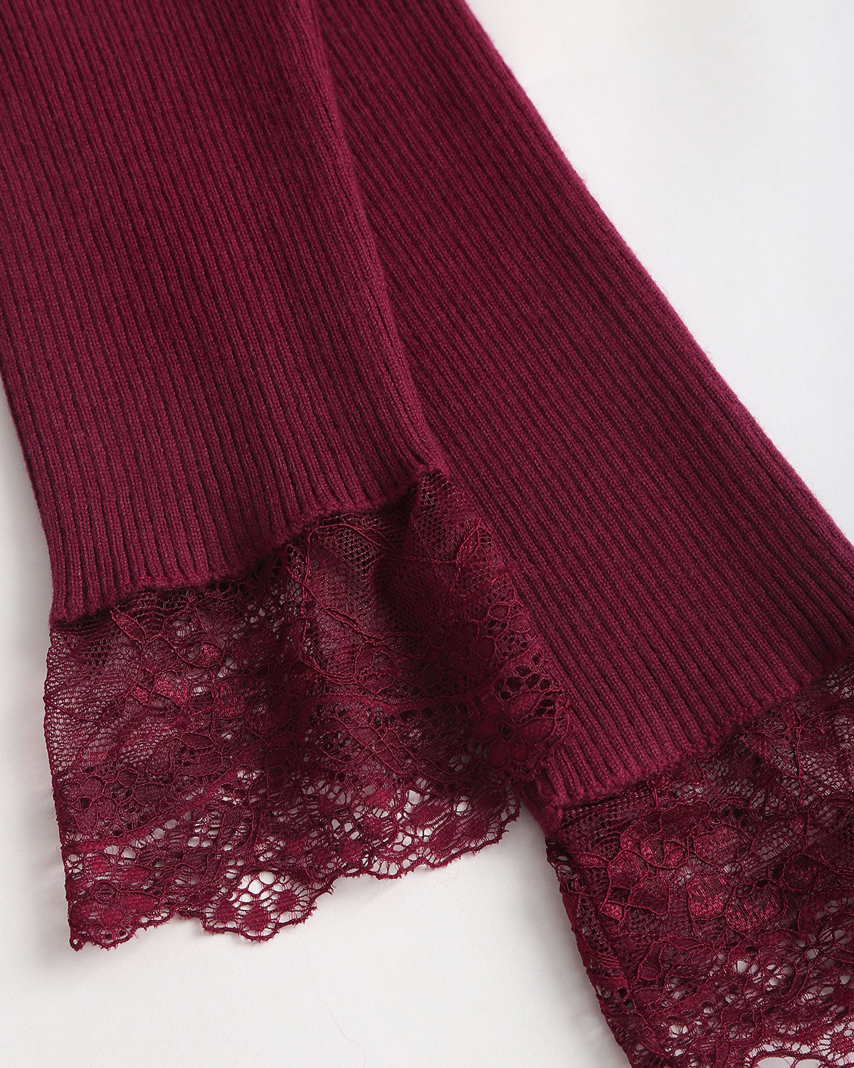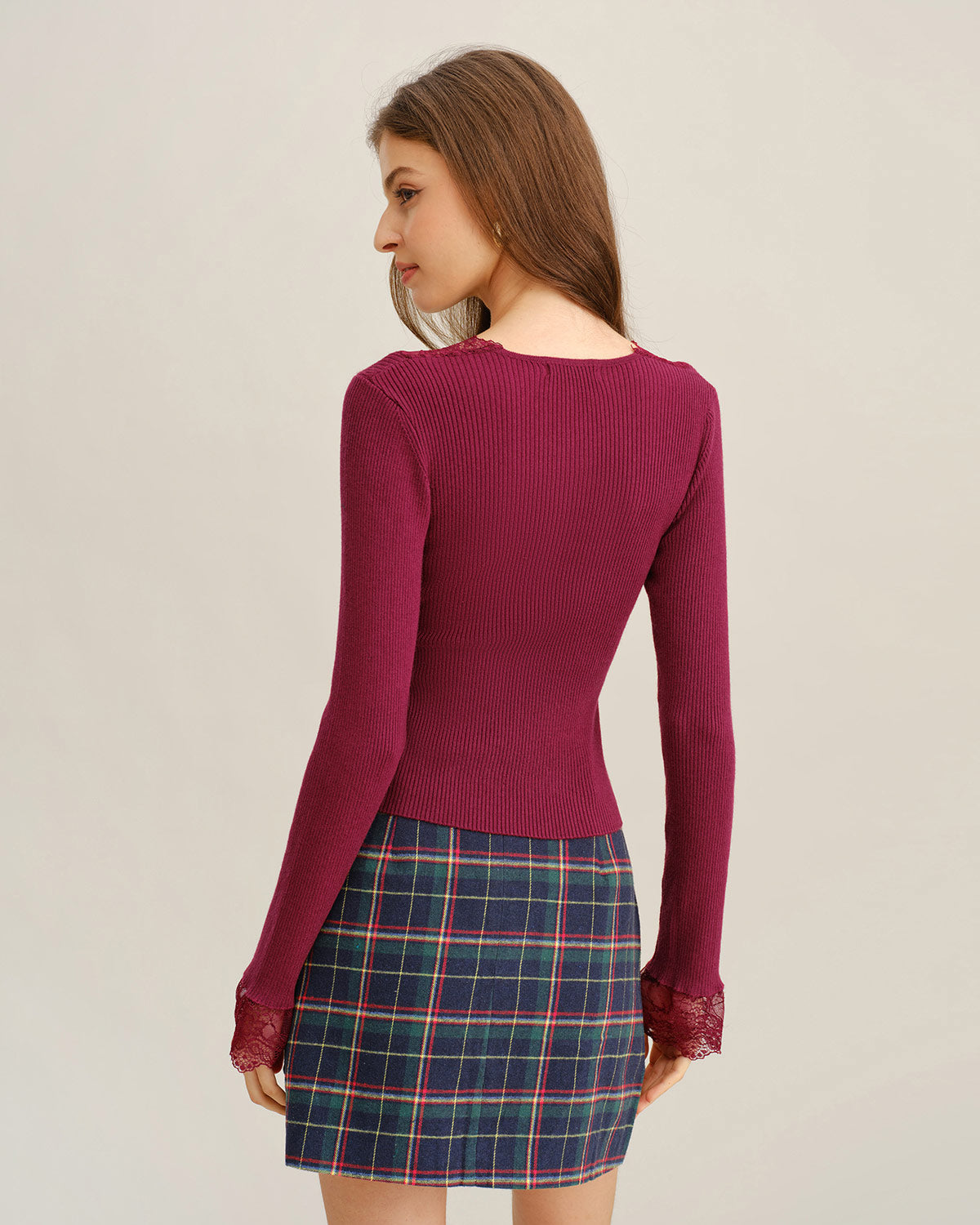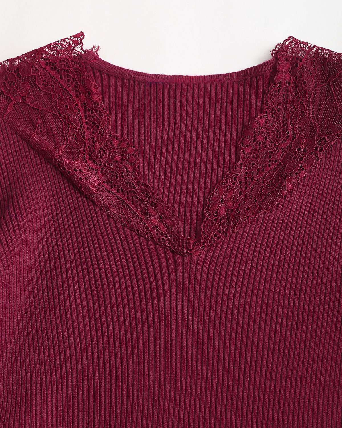 חולצת טי סריג עם צווארון V בצבע אדום יין