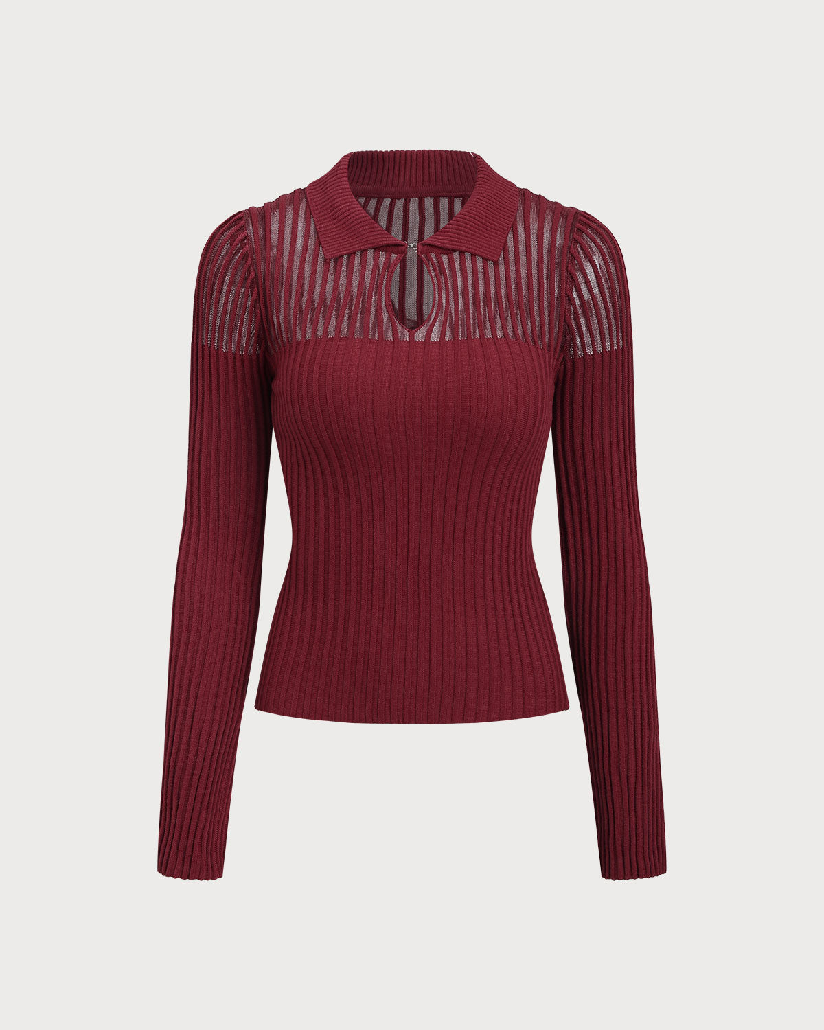 חולצה סריג צמודה שקופה בצבע אדום יין