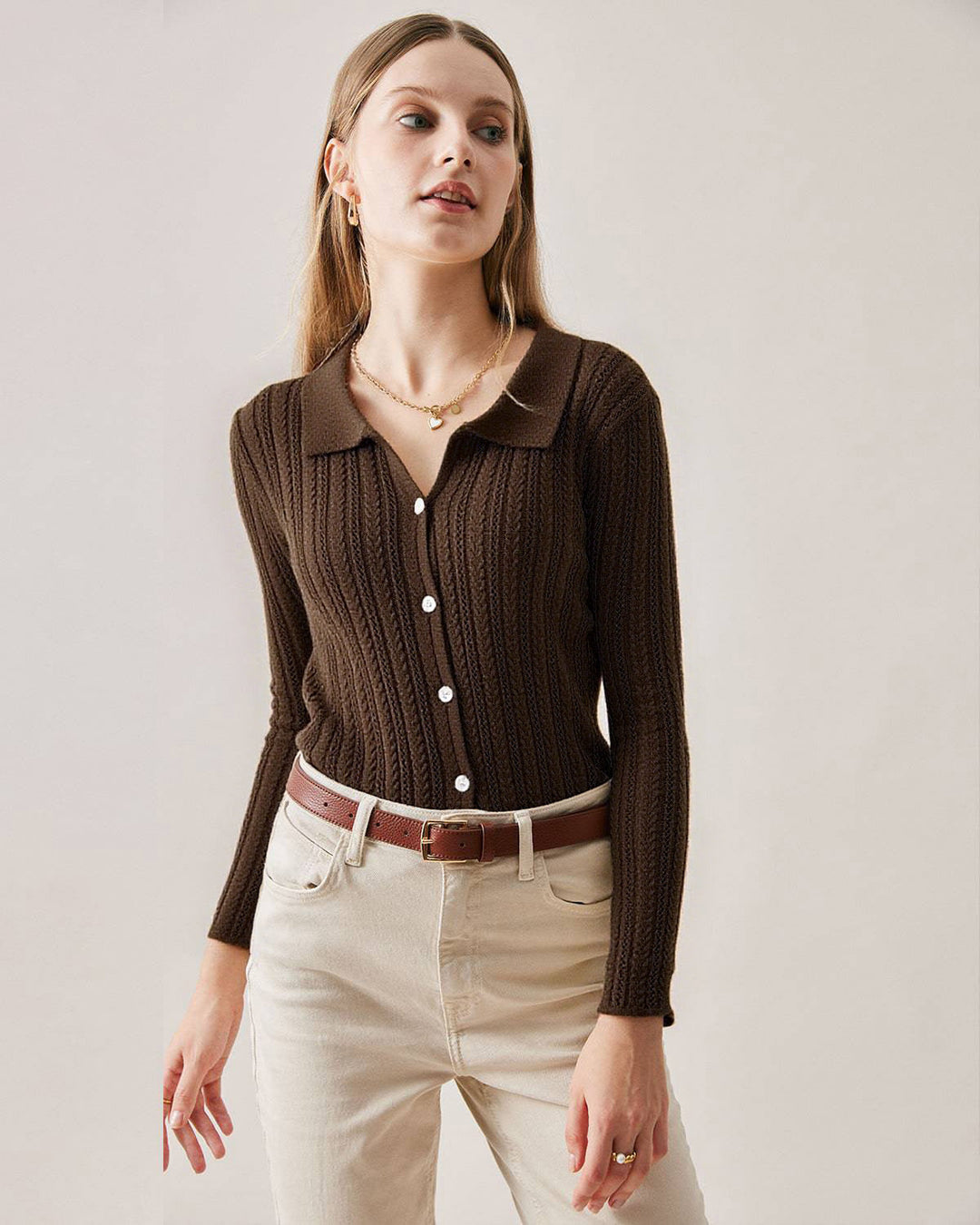 קרדיגן סריג צמוד בצבע קפה