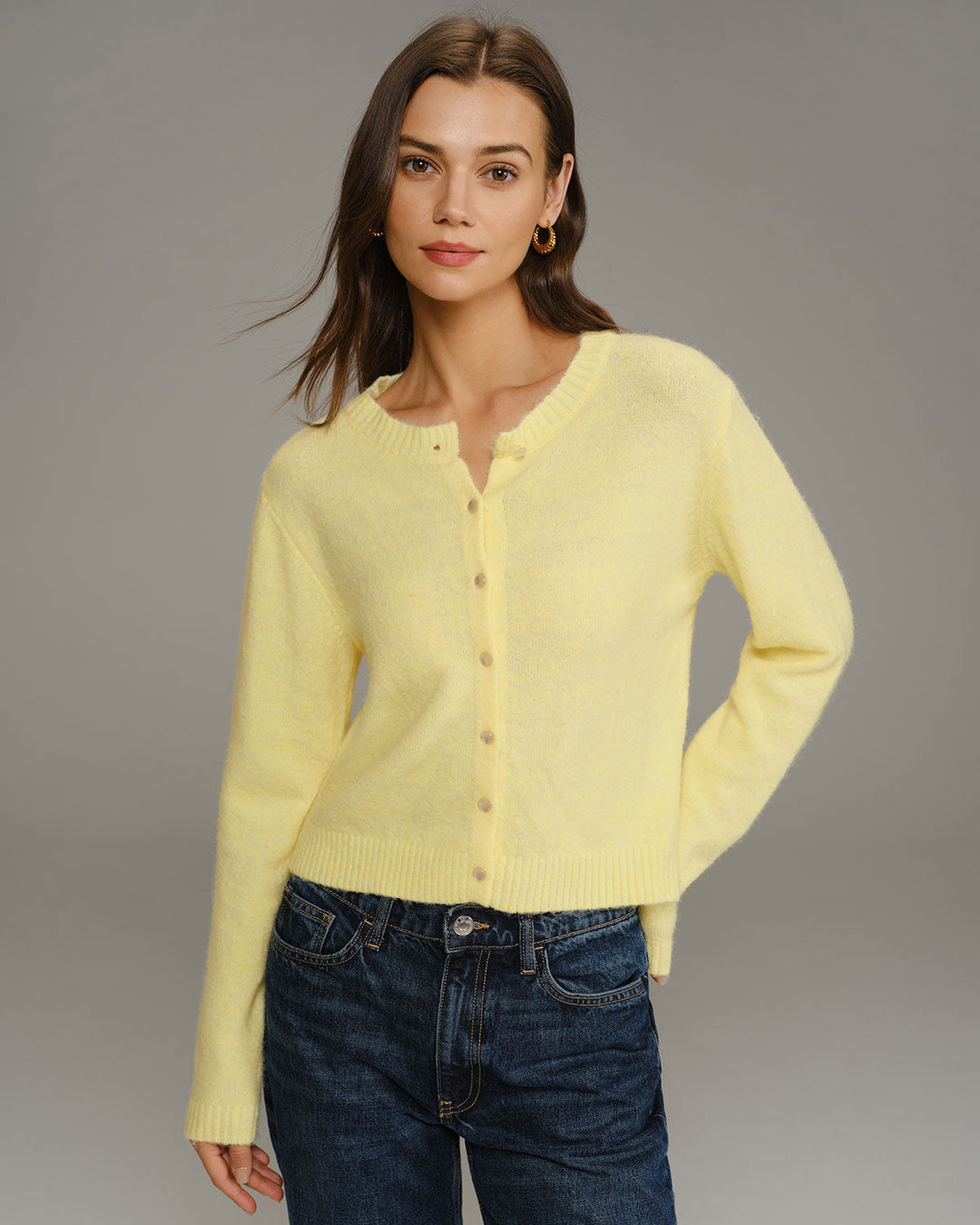 קרדיגן סרוג בצבע אדום יין עם צווארון עגול ועיצוב חזה יחיד