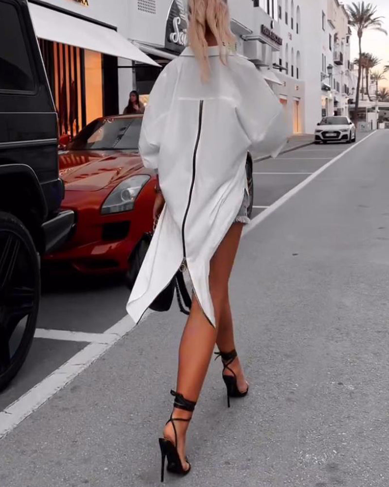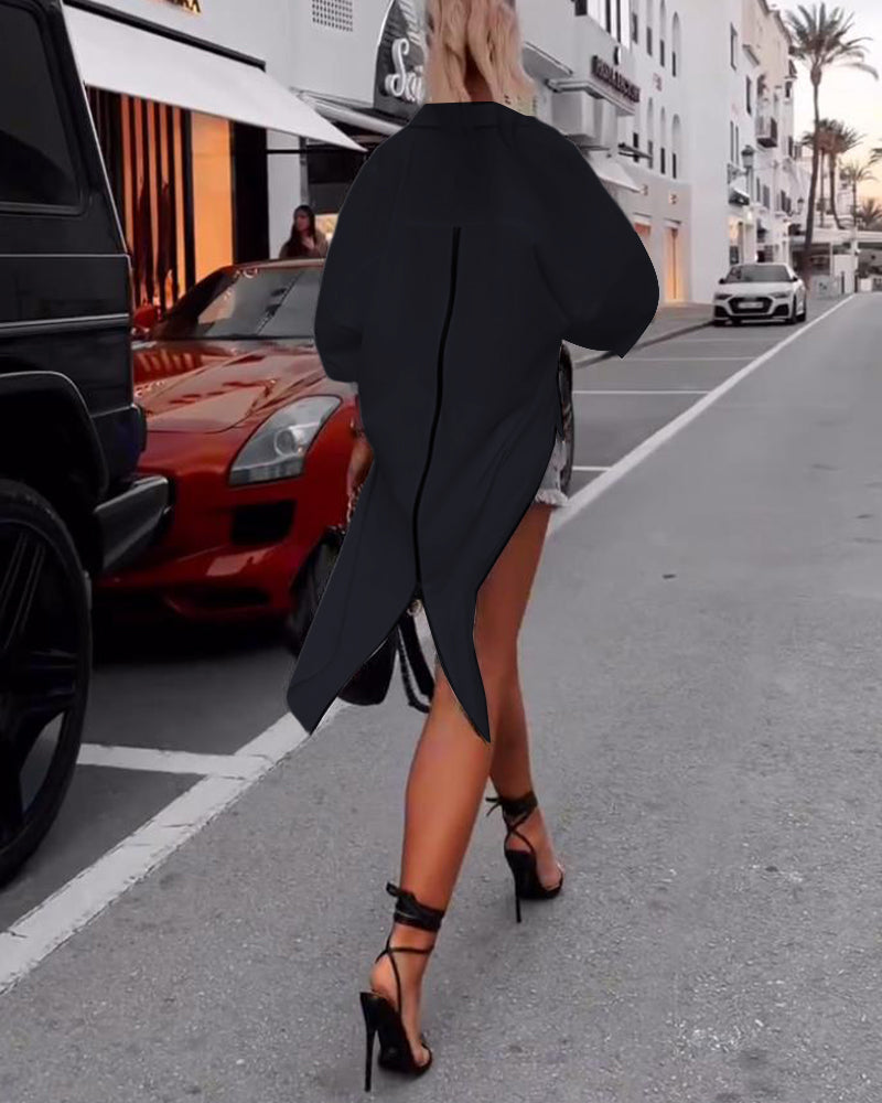 חולצה בצבע אחיד עם שסוף ודש קז'ואל