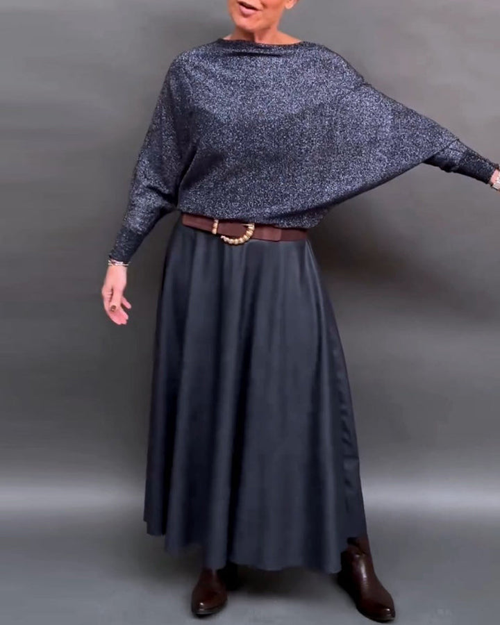 טופ מבריק עם צווארון עגול ושרוולי דולמן