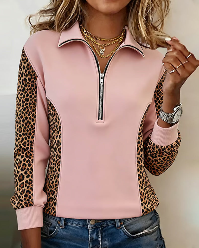 סווטשירט קז'ואל עם הדפס נמר ורוכסן חצי