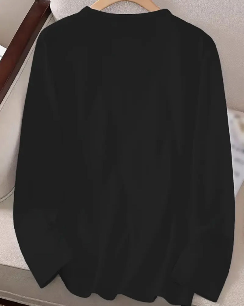 חולצה ארוכת שרוולים עם הדפס עץ חג המולד וצווארון עגול