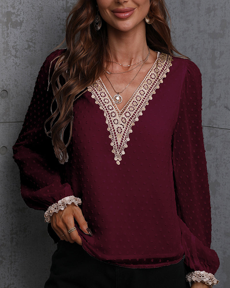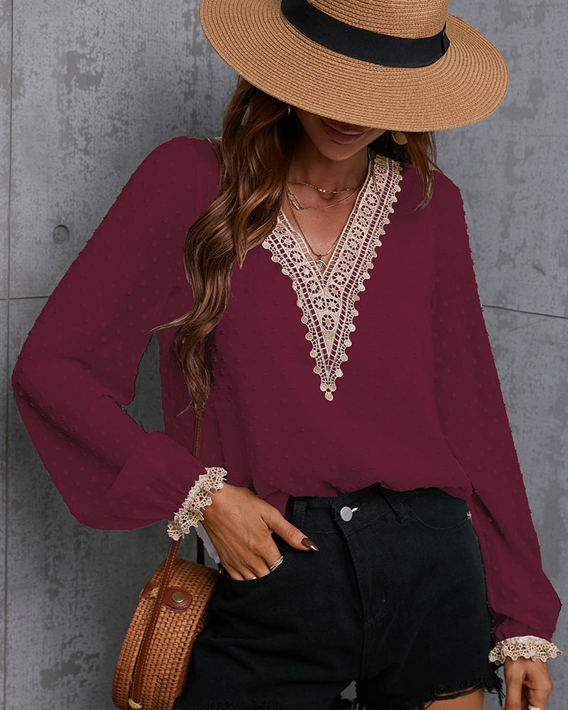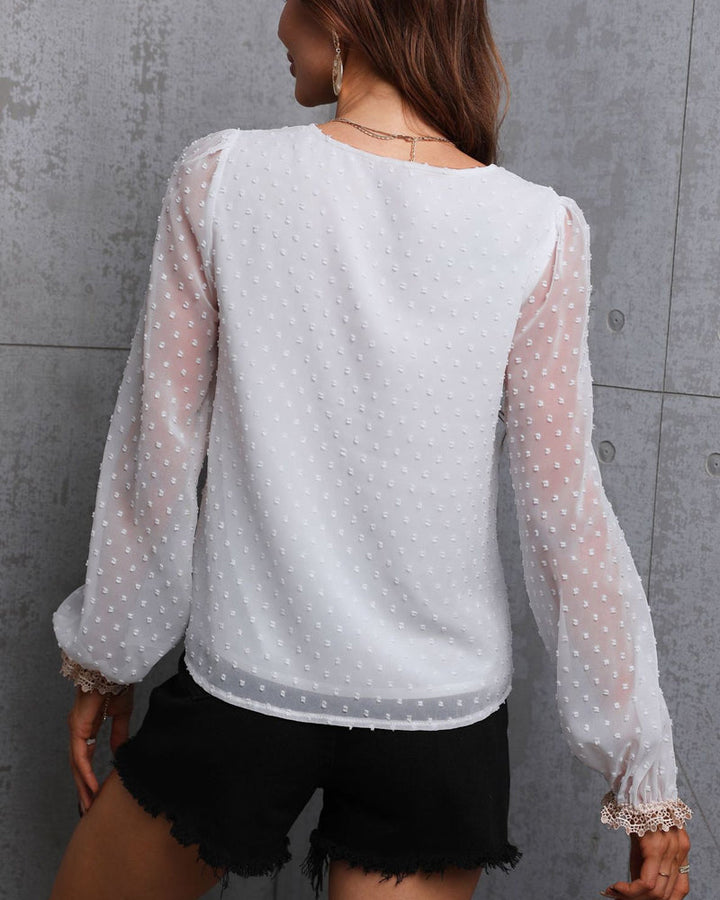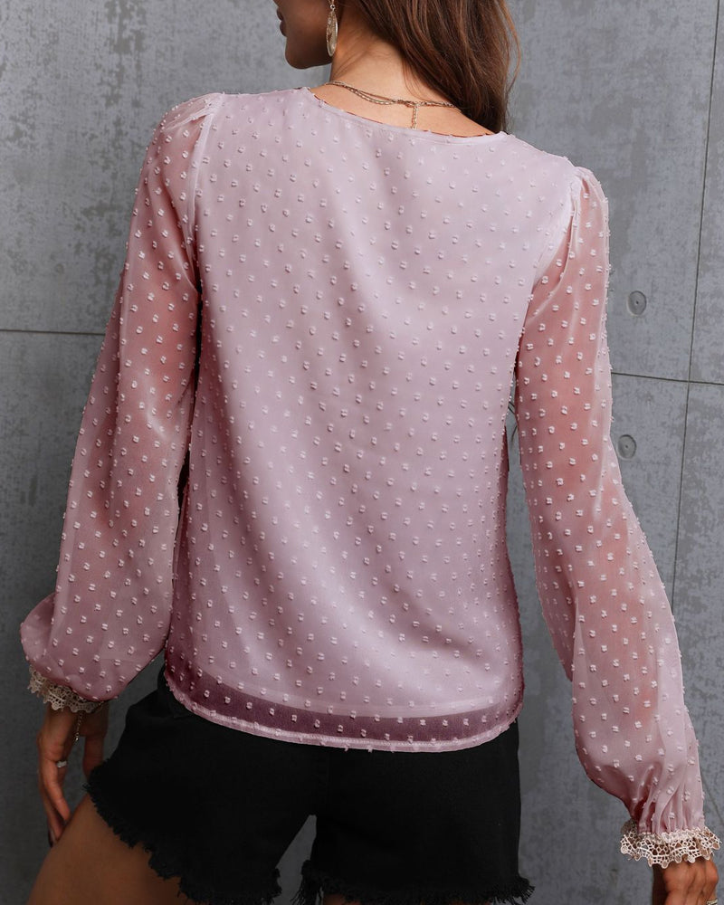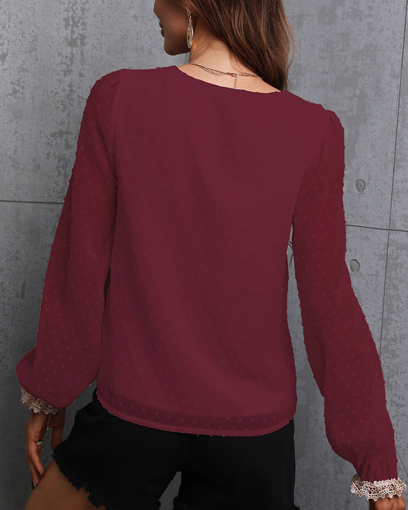 חולצת תחרה עם שרוולים ארוכים בצבע אחיד