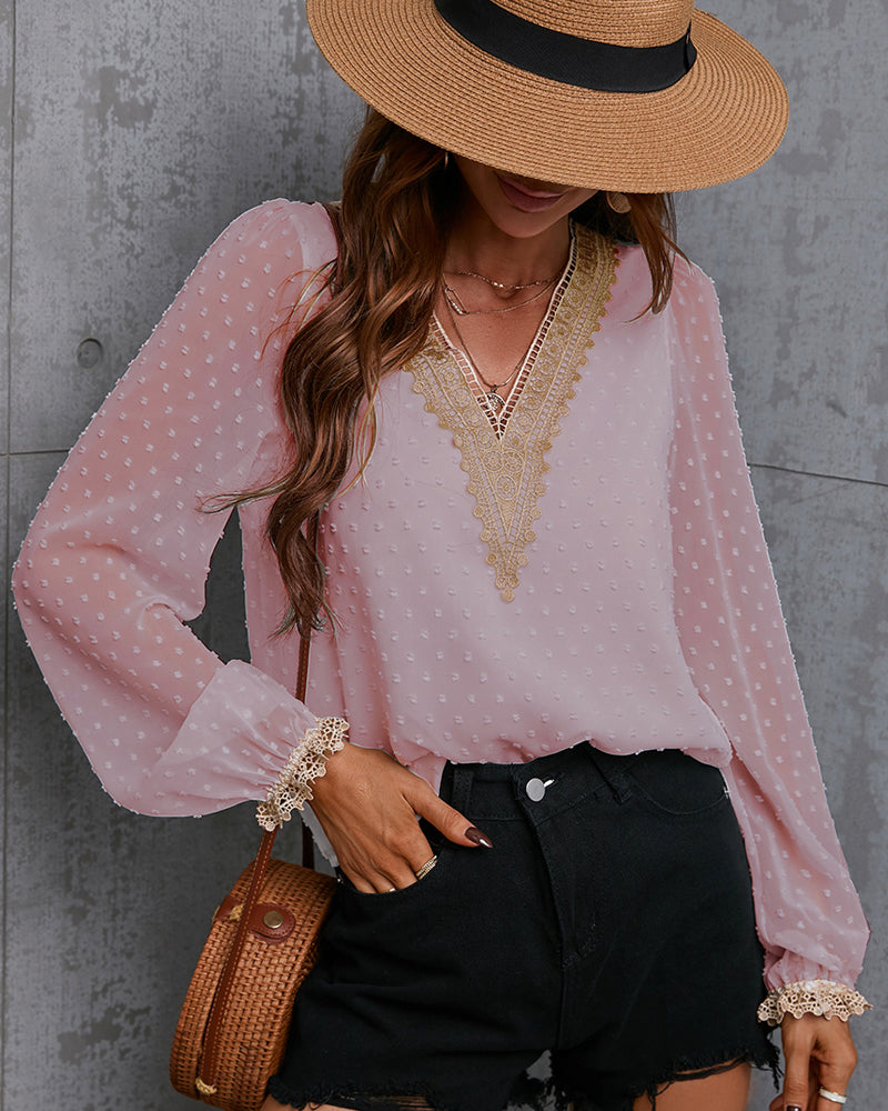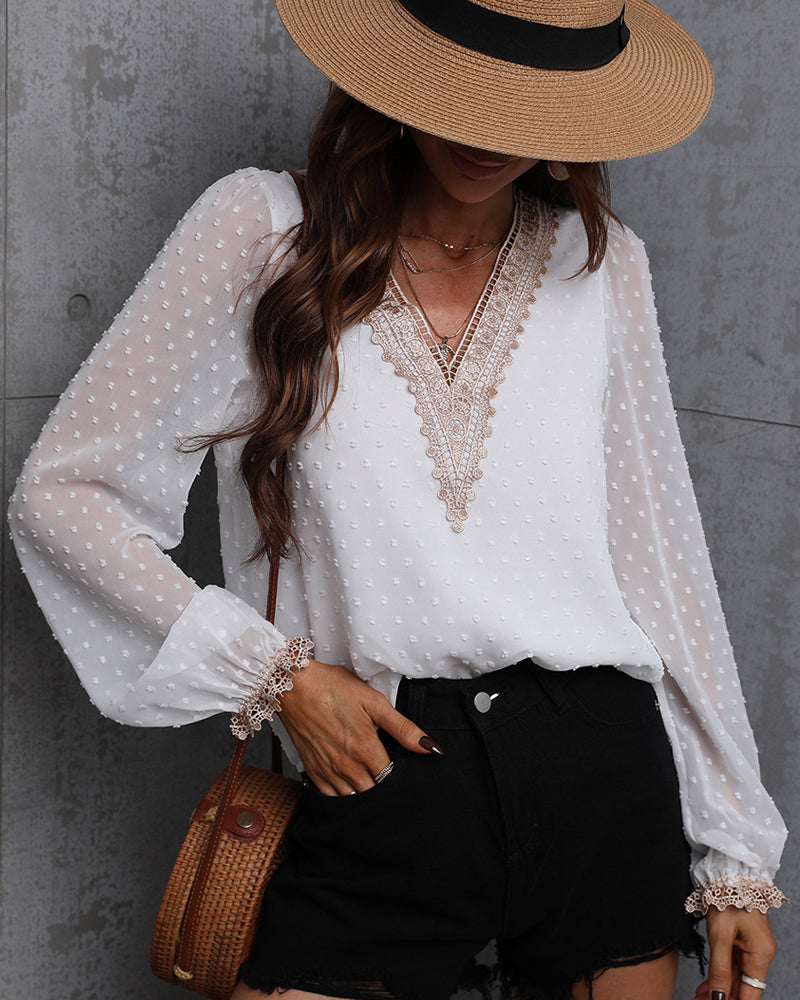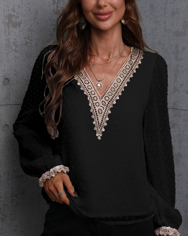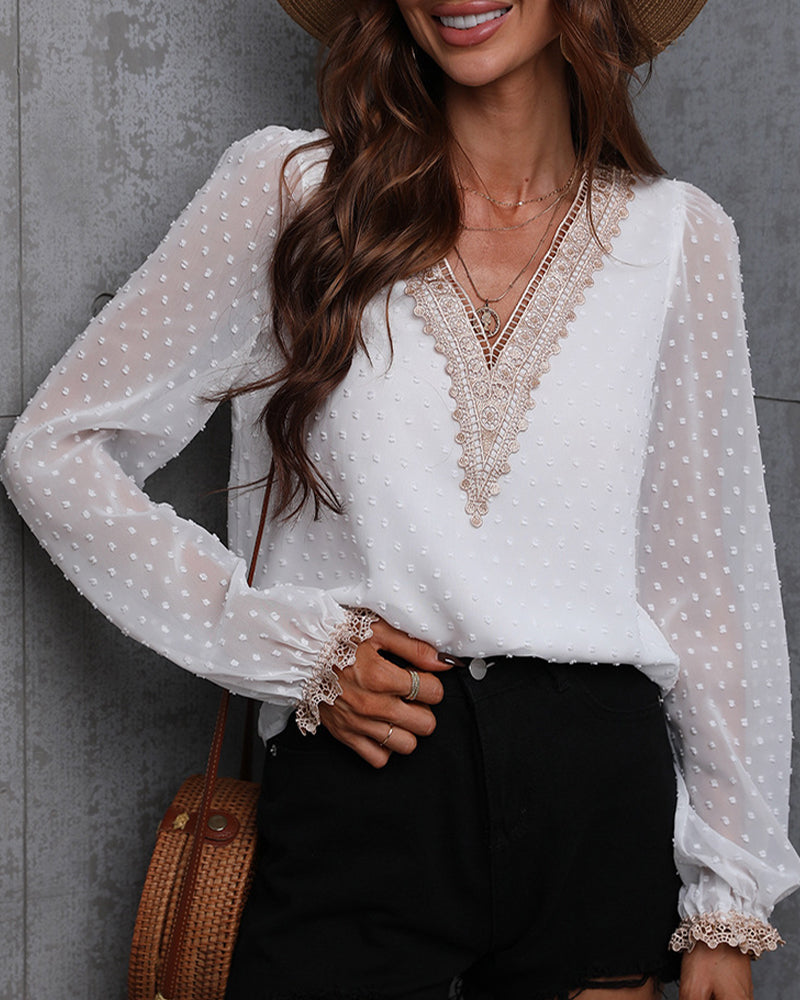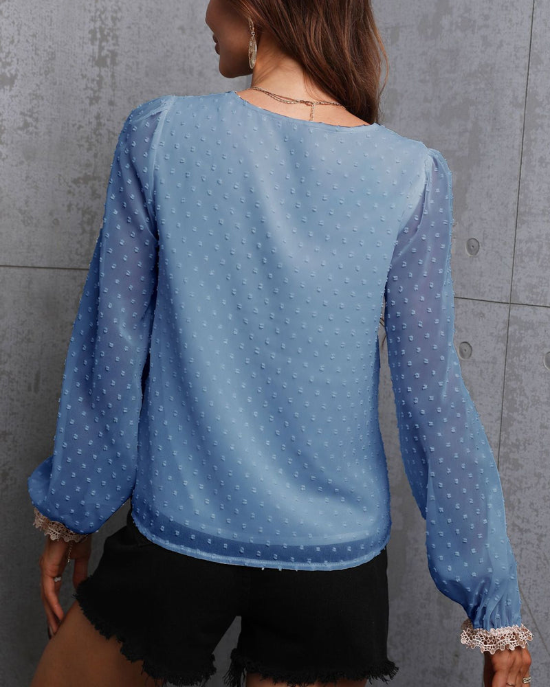 חולצת תחרה עם שרוולים ארוכים בצבע אחיד
