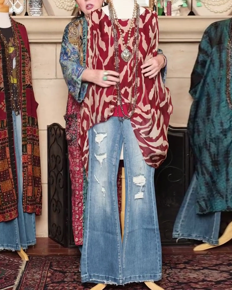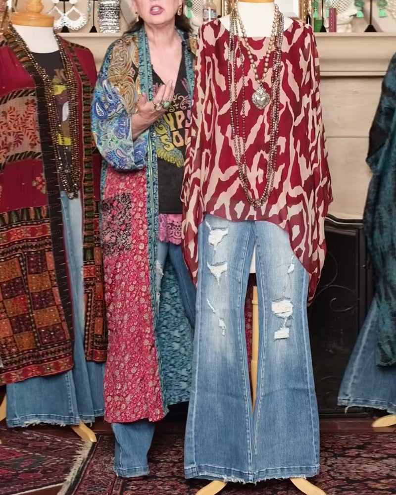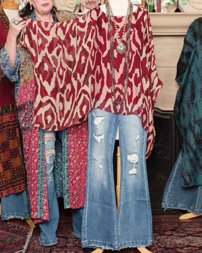 חולצה ארוכת שרוולים עם מודפס ושרוולי עטלף