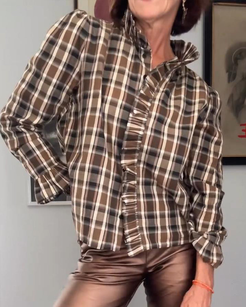 חולצה ארוכת שרוולים עם דוגמת משבצות פטריות