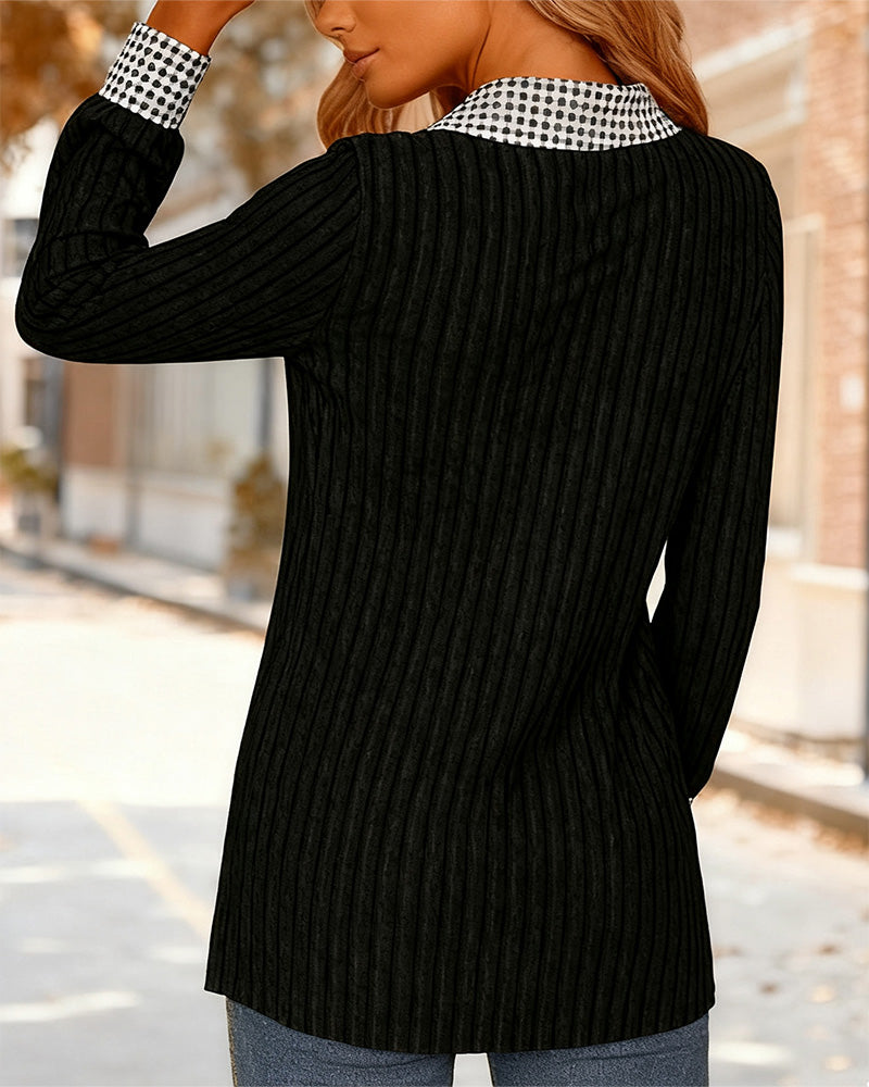 טופ מצולע עם צווארון דש משובץ מנוגד