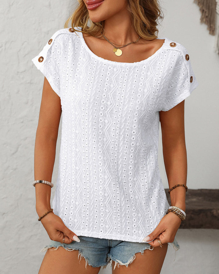 חולצה קצרה עם צווארון עגול וצווארון מכופתר