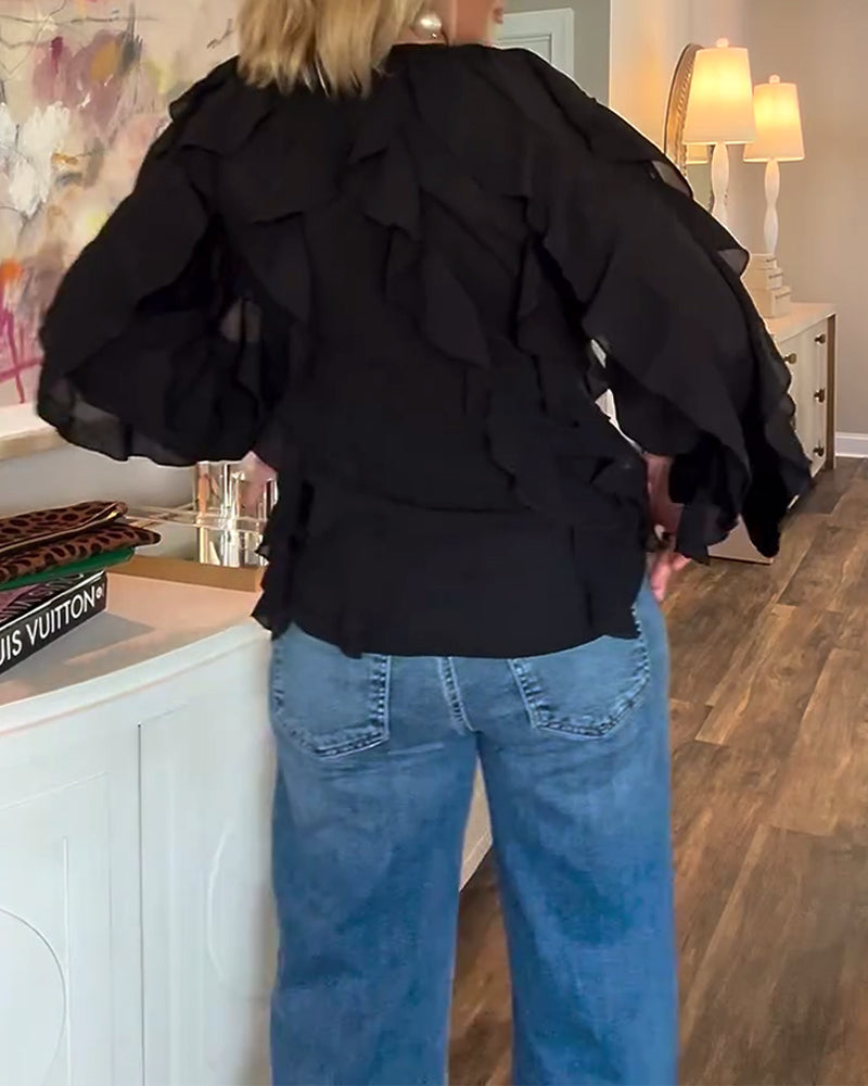 חולצה עם קפלים בצבע אחיד ובד זורם