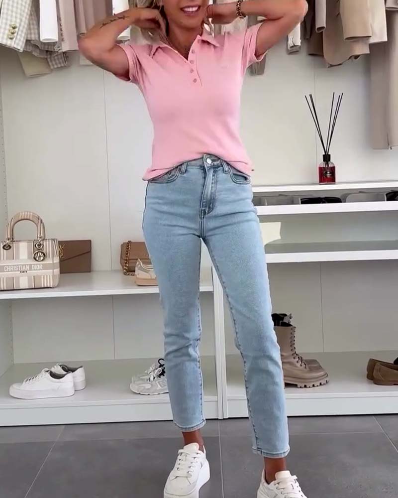 חולצת פולו בגזרה צרה בצבע אחיד עם הדפס הדפס