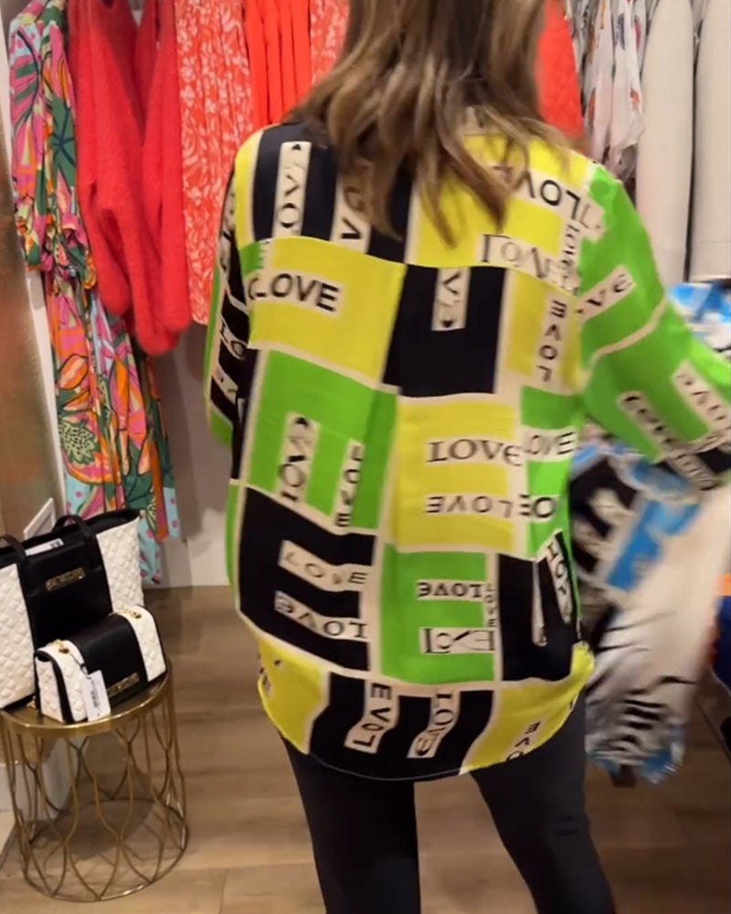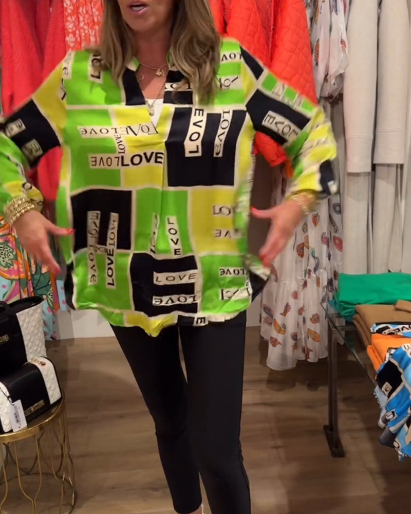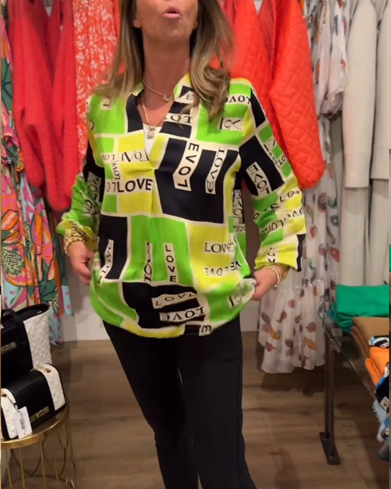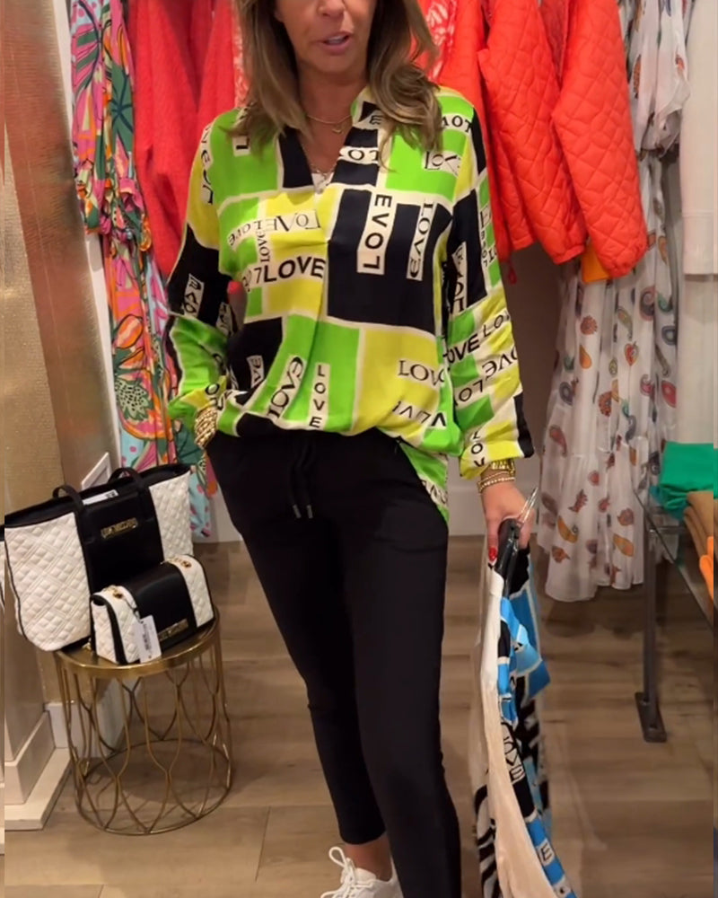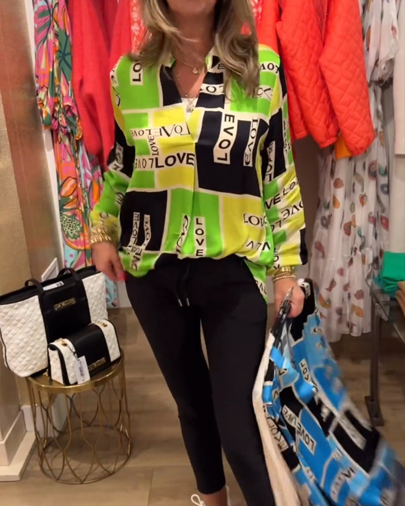 חולצת טי קז'ואלית עם צווארון V והדפס אותיות
