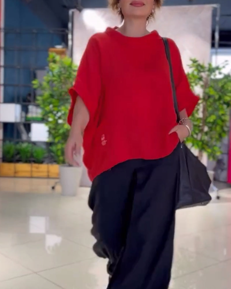 חולצה קז'ואלית עם צווארון עגול בהשראת רטרו