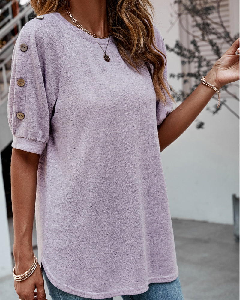 חולצת טי בצבע אחיד עם שרוולים מקושטים