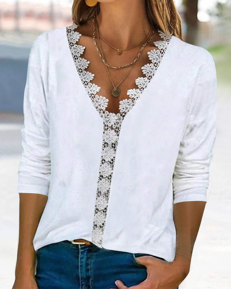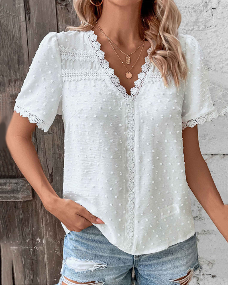חולצה תחרה עם צווארון וי ושרוולים קצרים