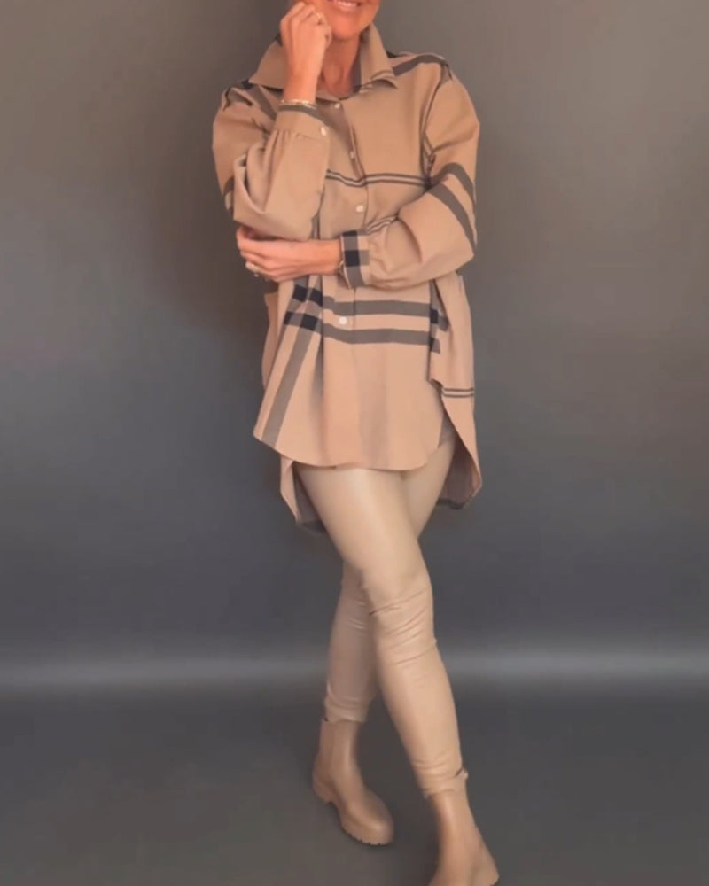 חולצה עם צווארון בלוק צבעוני וכפתורים בחזה יחיד