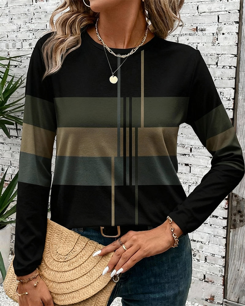 חולצה ארוכת שרוולים עם פסים וצווארון עגול