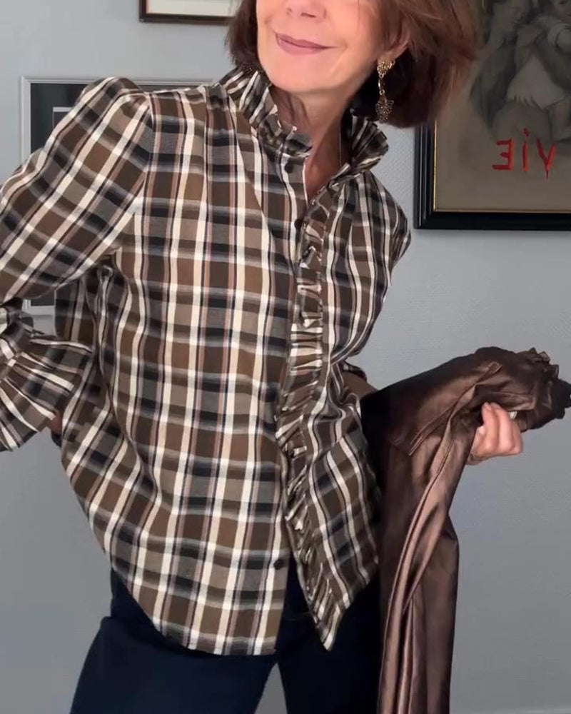 חולצה ארוכת שרוולים עם דוגמת משבצות פטריות