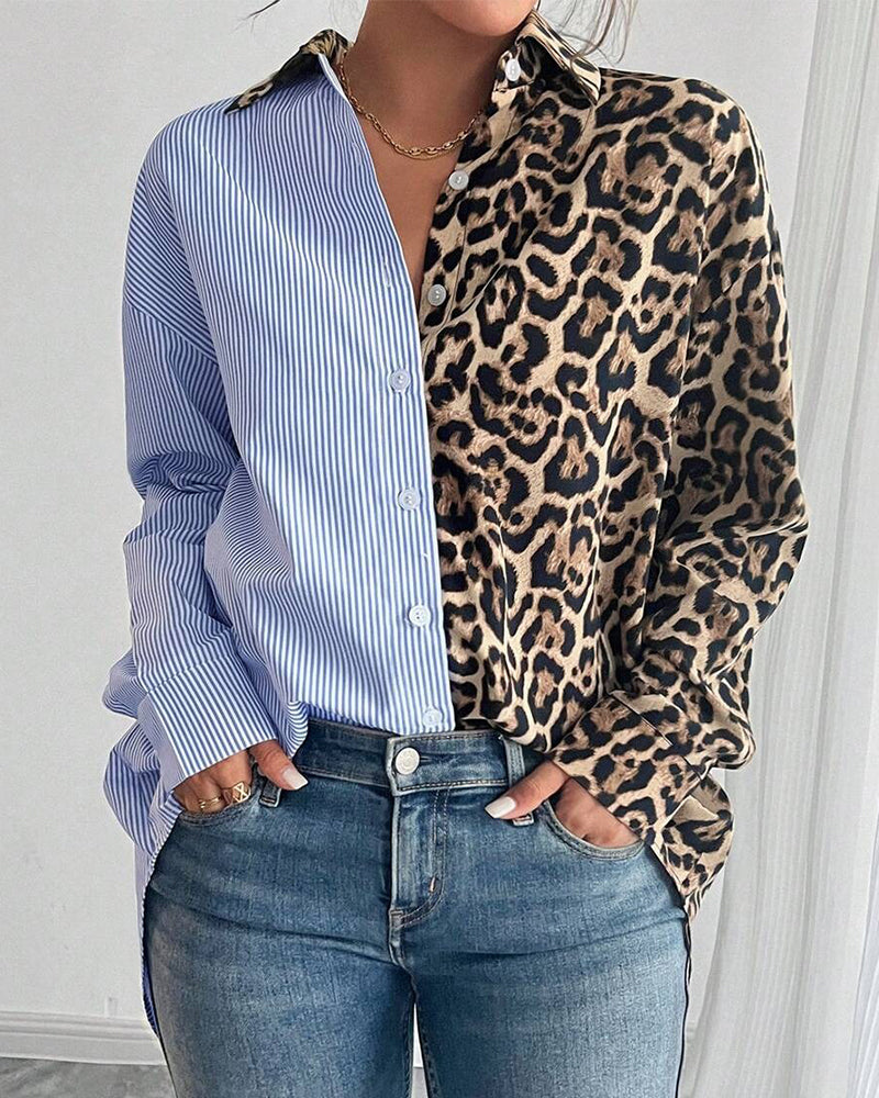 חולצה עם הדפס נמר ועיצוב טלאים מפוספס