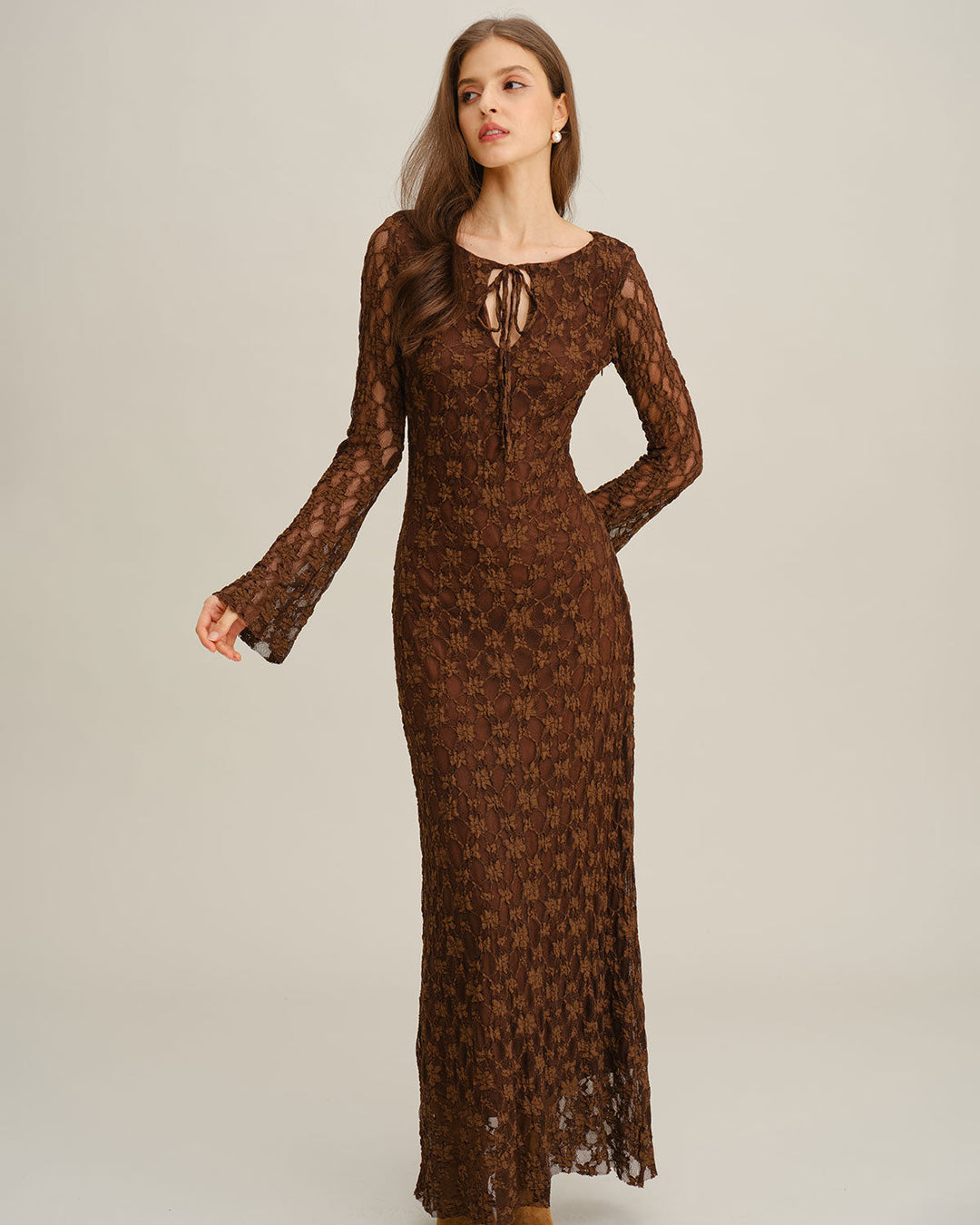 שמלת מקסי סריג עם צווארון סירה בצבע קפה