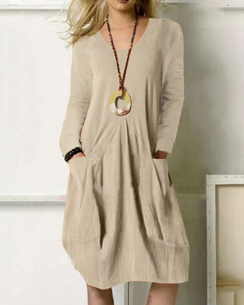 שמלה עם צווארון עגול ושרוולים שלושה רבעים
