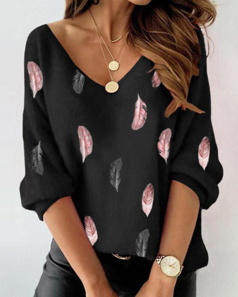 חולצה ארוכת שרוולים עם הדפס נוצות ועיצוב אותיות